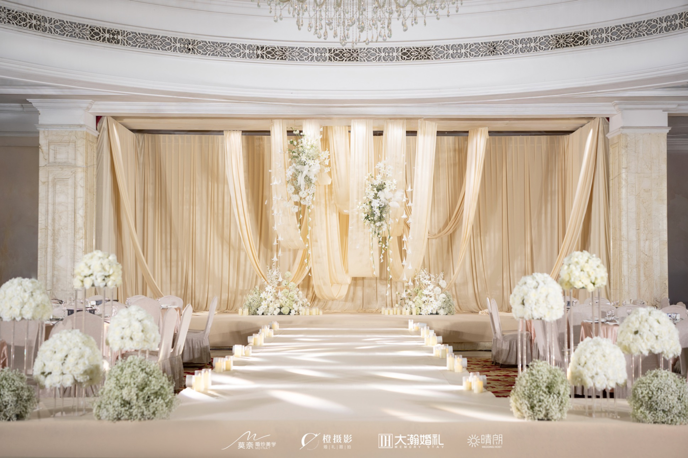 大瀚婚礼策划 香槟色婚礼不在是只有温馨了 也可以高级一点 在小酒店的布置中黑色的底色是最好的一个选择 可以让现场和后期都看起来很大 酒店:海中洲[更多…]
