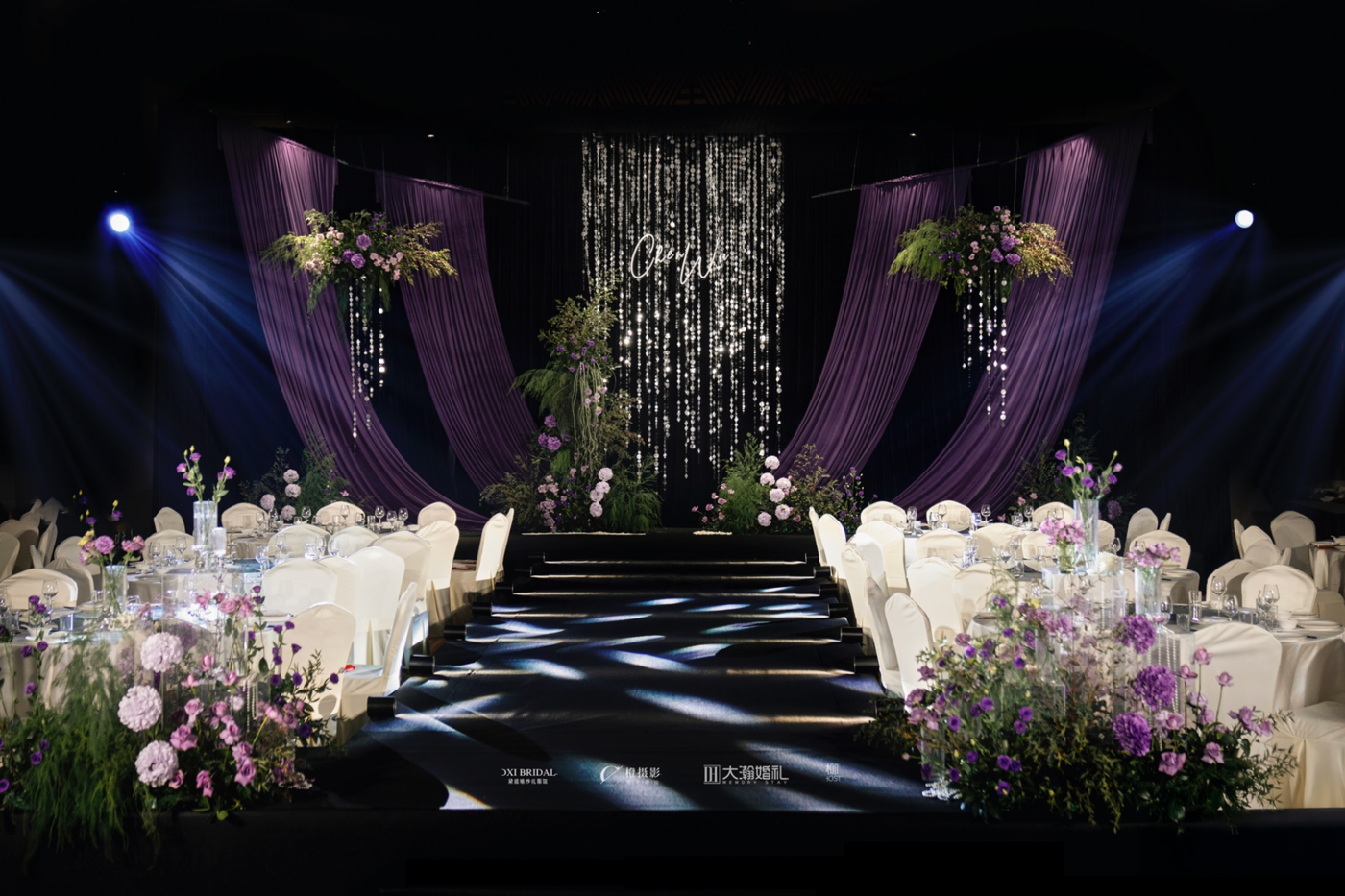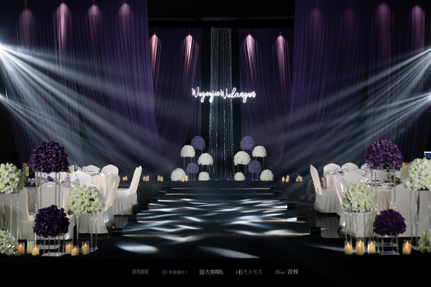 福安大瀚婚礼大瀚婚礼-weddong 紫色婚礼-鲜花婚礼 第一眼即“高级”的婚礼,独特又不失韵味 紫色线帘元素打造而成的主背景格外吸睛 浓郁厚重的紫色垂坠线帘 让婚礼变得小众高级且具有艺术感 大面积的紫色色彩得当|张弛有度 酒店:金宏宴酒店[更多…]
